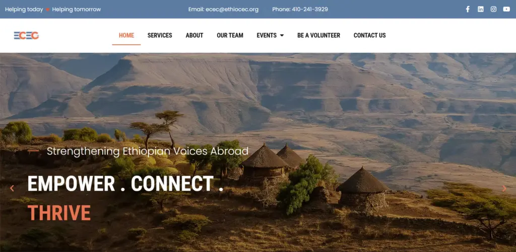 We developed a clean, user-friendly website for the Ethiopian Community Empowerment Center (ECEC) to showcase its programs, events, and community services. The site includes a dedicated donation page, volunteer sign-up forms, and clear navigation to help visitors easily engage and support the organization’s mission.