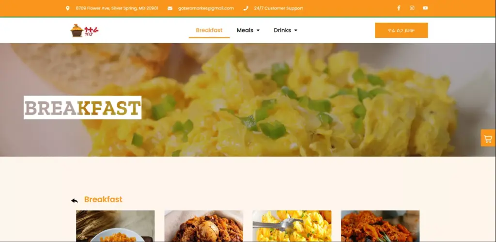 We developed a website for Sebsib Ethiopian Bar and Restaurant, featuring full online ordering capabilities, allowing customers to easily browse the menu and place orders directly through the site.