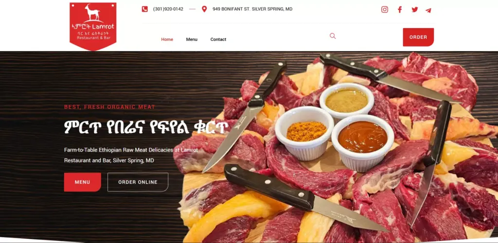 We developed a website for Lamrot Ethiopian Bar and Restaurant, featuring full online ordering capabilities, allowing customers to easily browse the menu and place orders directly through the site.